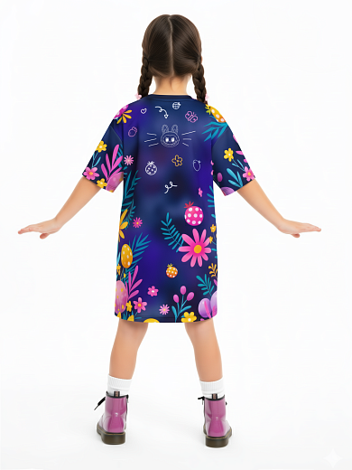 Платье-футболка из хлопка с оригинальным принтом. Платье прямого силуэта с короткими рукавами. Оригинальная и современная модель. Мягкий хлопок обладает приятными тактильными свойствами, а яркий принт не выцветает и совершенно не ощутим. Благодаря уникальной технологии печати по ткани - яркий принт не потрескается и не полиняет! Все используемые краски для печати принта безопасные и экологичные и сохраняют воздухопроницаемость ткани