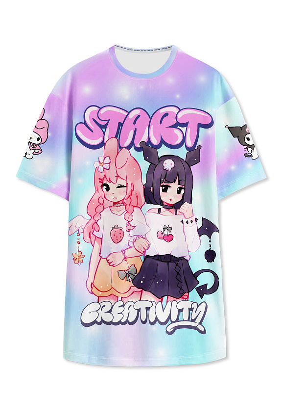 Платье-футболка из хлопка с оригинальным принтом. Платье прямого силуэта с короткими рукавами. Оригинальная и современная модель. Мягкий хлопок обладает приятными тактильными свойствами, а яркий принт не выцветает и совершенно не ощутим. Благодаря уникальной технологии печати по ткани - яркий принт не потрескается и не полиняет! Все используемые краски для печати принта безопасные и экологичные и сохраняют воздухопроницаемость ткани
