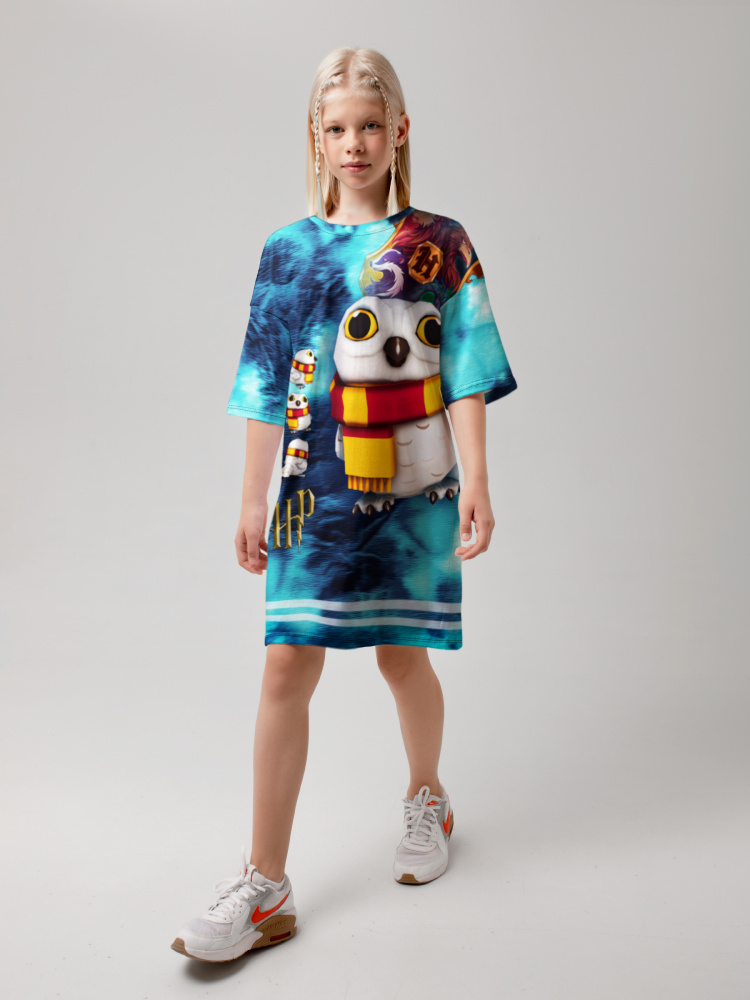 Платье-футболка из хлопка с оригинальным принтом. Платье прямого силуэта с короткими рукавами. Оригинальная и современная модель. Мягкий хлопок обладает приятными тактильными свойствами, а яркий принт не выцветает и совершенно не ощутим. Благодаря уникальной технологии печати по ткани - яркий принт не потрескается и не полиняет! Все используемые краски для печати принта безопасные и экологичные и сохраняют воздухопроницаемость ткани
