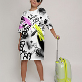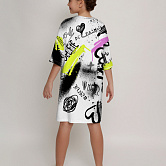 Платье-футболка из хлопка с оригинальным принтом. Платье прямого силуэта с короткими рукавами. Оригинальная и современная модель. Мягкий хлопок обладает приятными тактильными свойствами, а яркий принт не выцветает и совершенно не ощутим. Благодаря уникальной технологии печати по ткани - яркий принт не потрескается и не полиняет! Все используемые краски для печати принта безопасные и экологичные и сохраняют воздухопроницаемость ткани