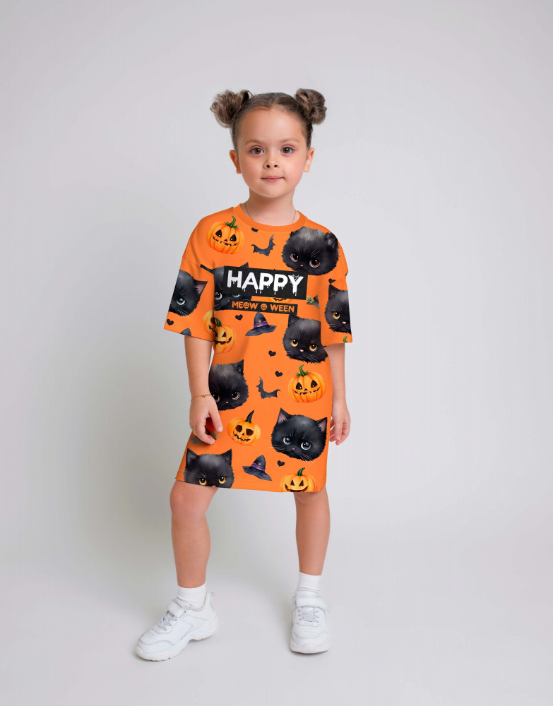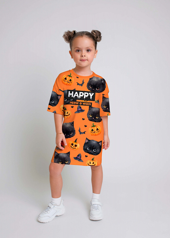 Платье-футболка из хлопка с оригинальным принтом. Платье прямого силуэта с короткими рукавами. Оригинальная и современная модель. Мягкий хлопок обладает приятными тактильными свойствами, а яркий принт не выцветает и совершенно не ощутим. Благодаря уникальной технологии печати по ткани - яркий принт не потрескается и не полиняет! Все используемые краски для печати принта безопасные и экологичные и сохраняют воздухопроницаемость ткани