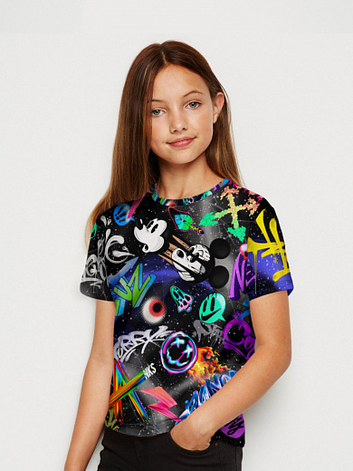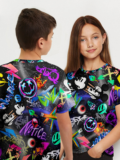 Яркая футболка из хлопка с тематическим принтом. Модель прямого силуэта. Футболка идеально подойдет для повседневной носки. Мягкий хлопок обладает приятными тактильными свойствами, а яркий принт не выцветает и совершенно не ощутим. Благодаря уникальной технологии печати по ткани - яркий принт не потрескается и не полиняет! Все используемые краски для печати принта безопасные и экологичные и сохраняют воздухопроницаемость ткани.