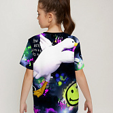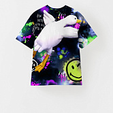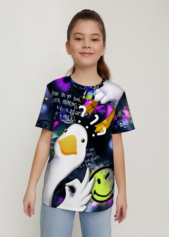 Яркая футболка из хлопка с тематическим принтом. Модель прямого силуэта. Футболка идеально подойдет для повседневной носки. Мягкий хлопок обладает приятными тактильными свойствами, а яркий принт не выцветает и совершенно не ощутим. Благодаря уникальной технологии печати по ткани - яркий принт не потрескается и не полиняет! Все используемые краски для печати принта безопасные и экологичные и сохраняют воздухопроницаемость ткани.