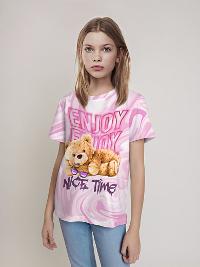 Яркая футболка из хлопка с тематическим принтом. Модель прямого силуэта. Футболка идеально подойдет для повседневной носки. Мягкий хлопок обладает приятными тактильными свойствами, а яркий принт не выцветает и совершенно не ощутим. Благодаря уникальной технологии печати по ткани - яркий принт не потрескается и не полиняет! Все используемые краски для печати принта безопасные и экологичные и сохраняют воздухопроницаемость ткани.