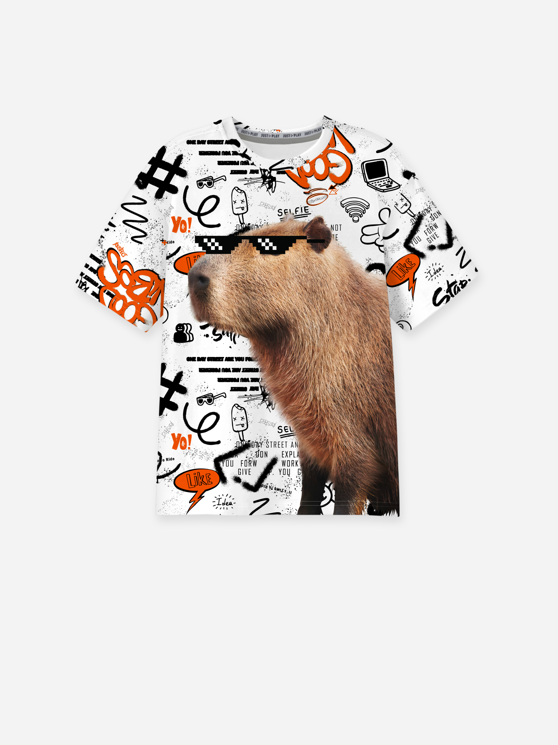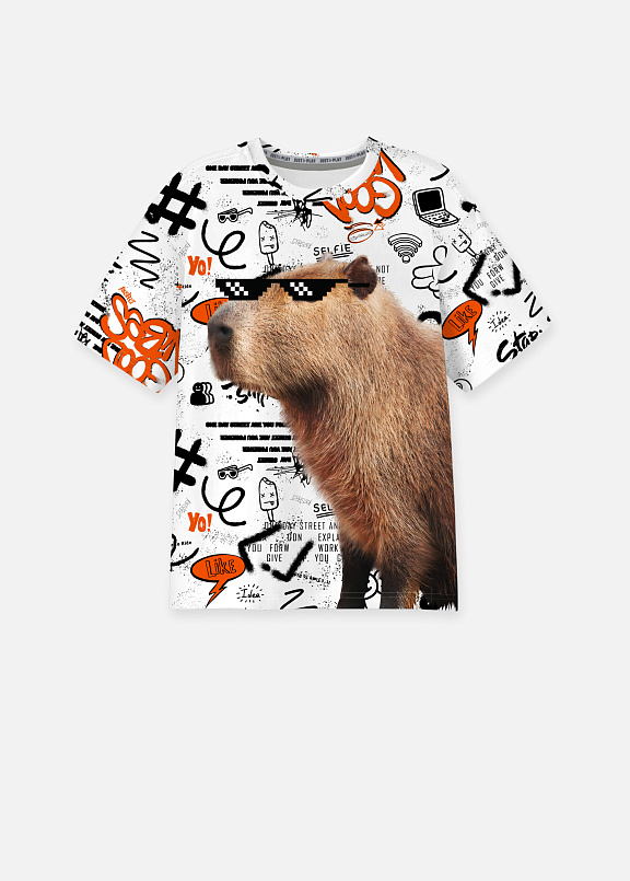 Яркая футболка из хлопка с тематическим принтом. Модель прямого силуэта. Футболка идеально подойдет для повседневной носки. Мягкий хлопок обладает приятными тактильными свойствами, а яркий принт не выцветает и совершенно не ощутим. Благодаря уникальной технологии печати по ткани - яркий принт не потрескается и не полиняет! Все используемые краски для печати принта безопасные и экологичные и сохраняют воздухопроницаемость ткани.