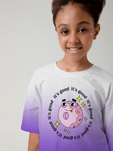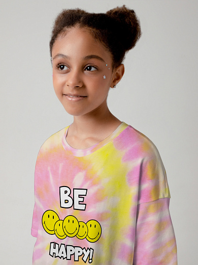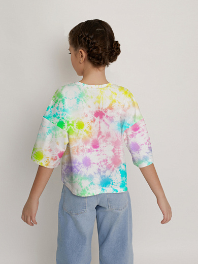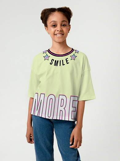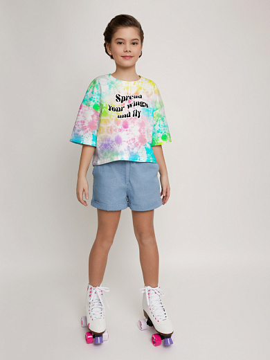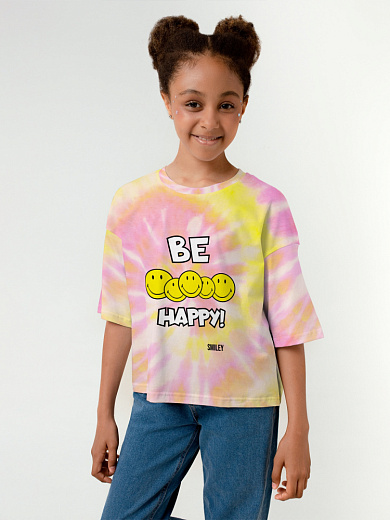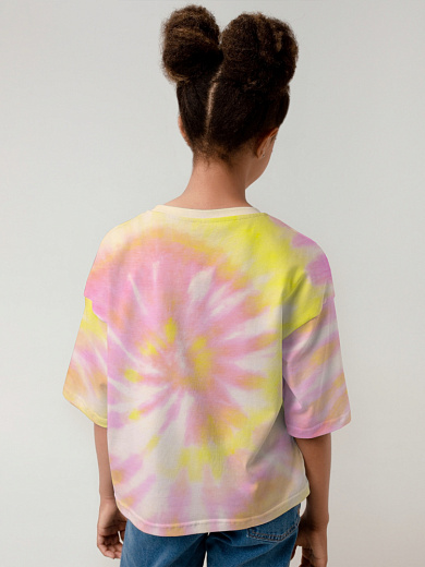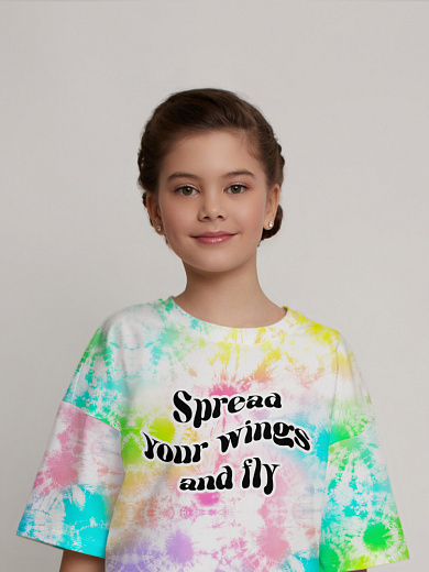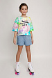 Яркая футболка из хлопка с оригинальным принтом. Модель свободного укороченного силуэта. Футболка идеально подойдет для повседневной носки. Мягкий хлопок обладает приятными тактильными свойствами, а яркий принт не выцветает и совершенно не ощутим. Благодаря уникальной технологии печати по ткани - яркий принт не потрескается и не полиняет! Все используемые краски для печати принта безопасные и экологичные и сохраняют воздухопроницаемость ткани.