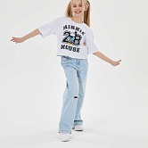 Яркая футболка из хлопка с оригинальным принтом. Модель свободного укороченного силуэта. Футболка идеально подойдет для повседневной носки. Мягкий хлопок обладает приятными тактильными свойствами, а яркий принт не выцветает и совершенно не ощутим. Благодаря уникальной технологии печати по ткани - яркий принт не потрескается и не полиняет! Все используемые краски для печати принта безопасные и экологичные и сохраняют воздухопроницаемость ткани.