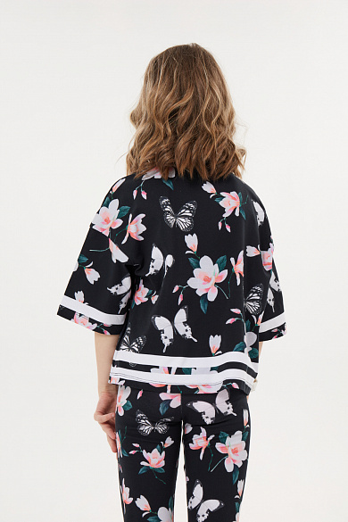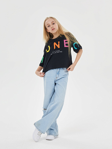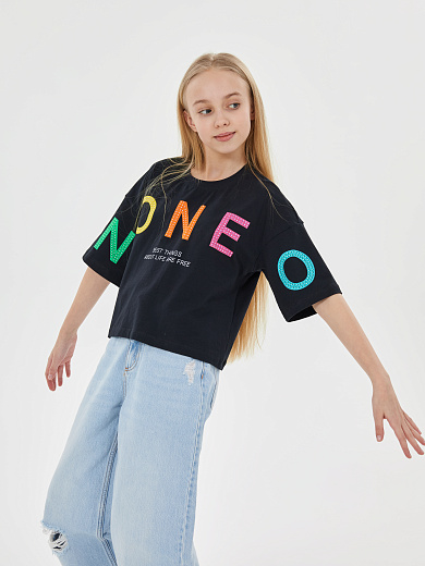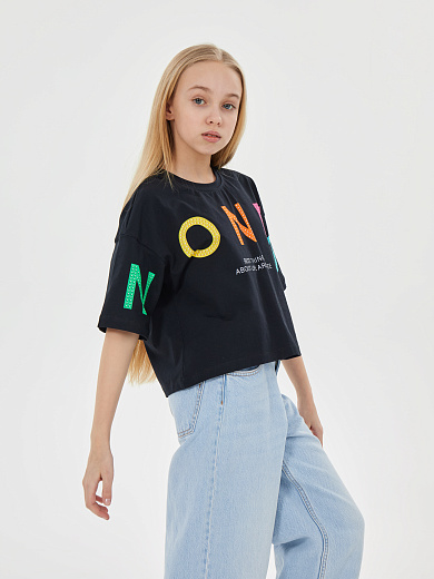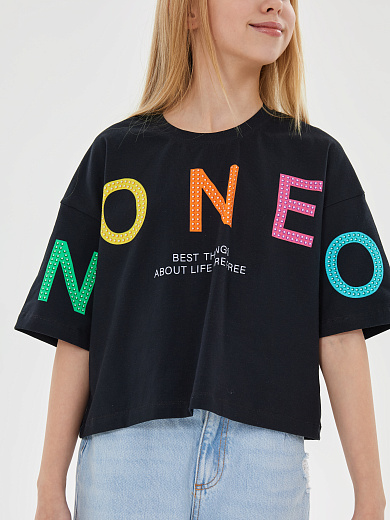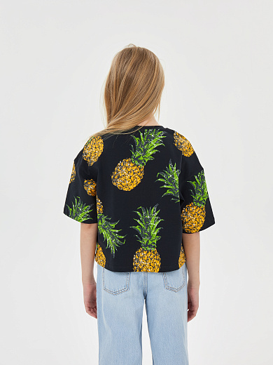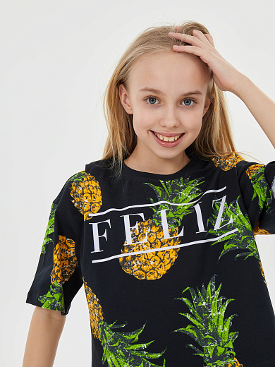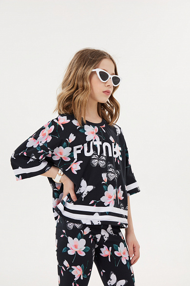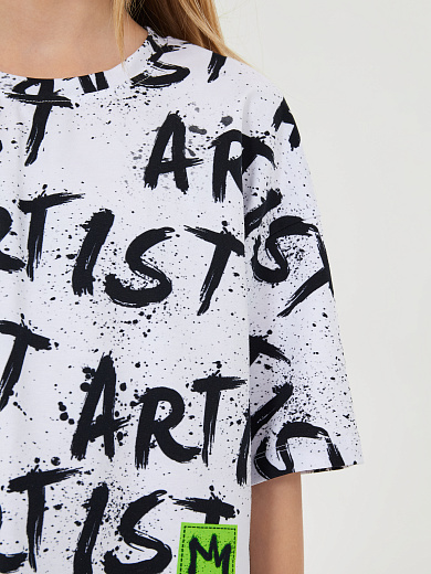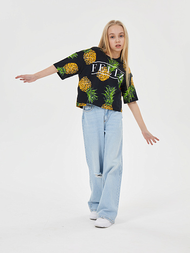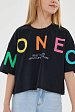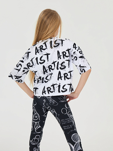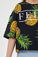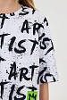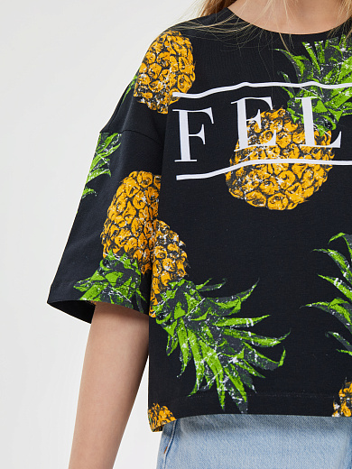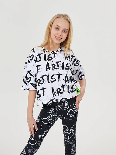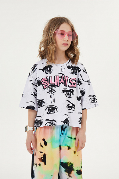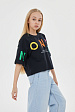 Яркая футболка из хлопка с оригинальным принтом. Модель свободного укороченного силуэта. Футболка идеально подойдет для повседневной носки. Мягкий хлопок обладает приятными тактильными свойствами, а яркий принт не выцветает и совершенно не ощутим. Благодаря уникальной технологии печати по ткани - яркий принт не потрескается и не полиняет! Все используемые краски для печати принта безопасные и экологичные и сохраняют воздухопроницаемость ткани.
