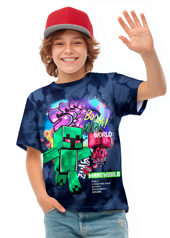Яркая футболка из хлопка с оригинальным принтом. Модель свободного укороченного силуэта. Футболка идеально подойдет для повседневной носки. Мягкий хлопок обладает приятными тактильными свойствами, а яркий принт не выцветает и совершенно не ощутим. Благодаря уникальной технологии печати по ткани - яркий принт не потрескается и не полиняет! Все используемые краски для печати принта безопасные и экологичные и сохраняют воздухопроницаемость ткани.