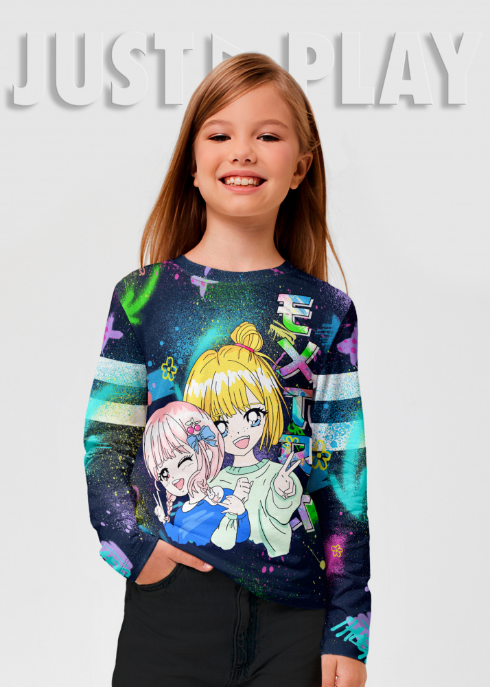KBJO21-0001-1 Футболка детская с длинным рукавом оверсайз