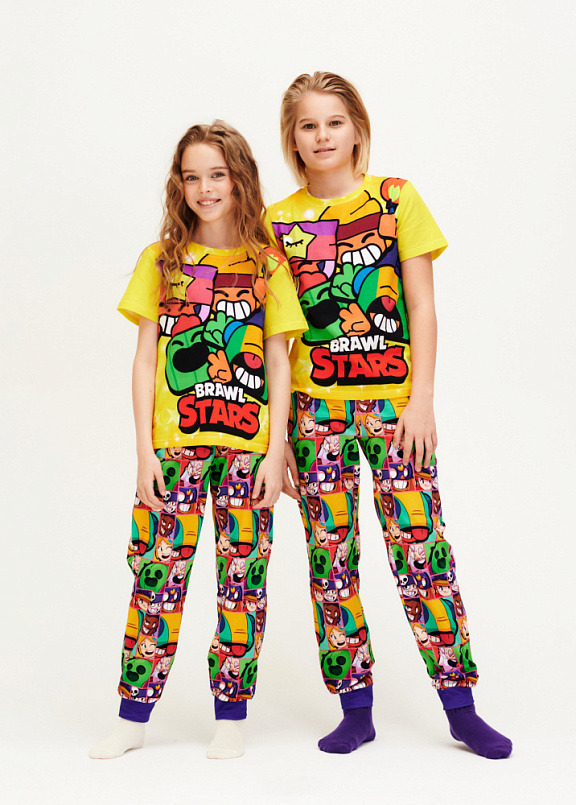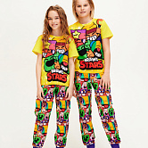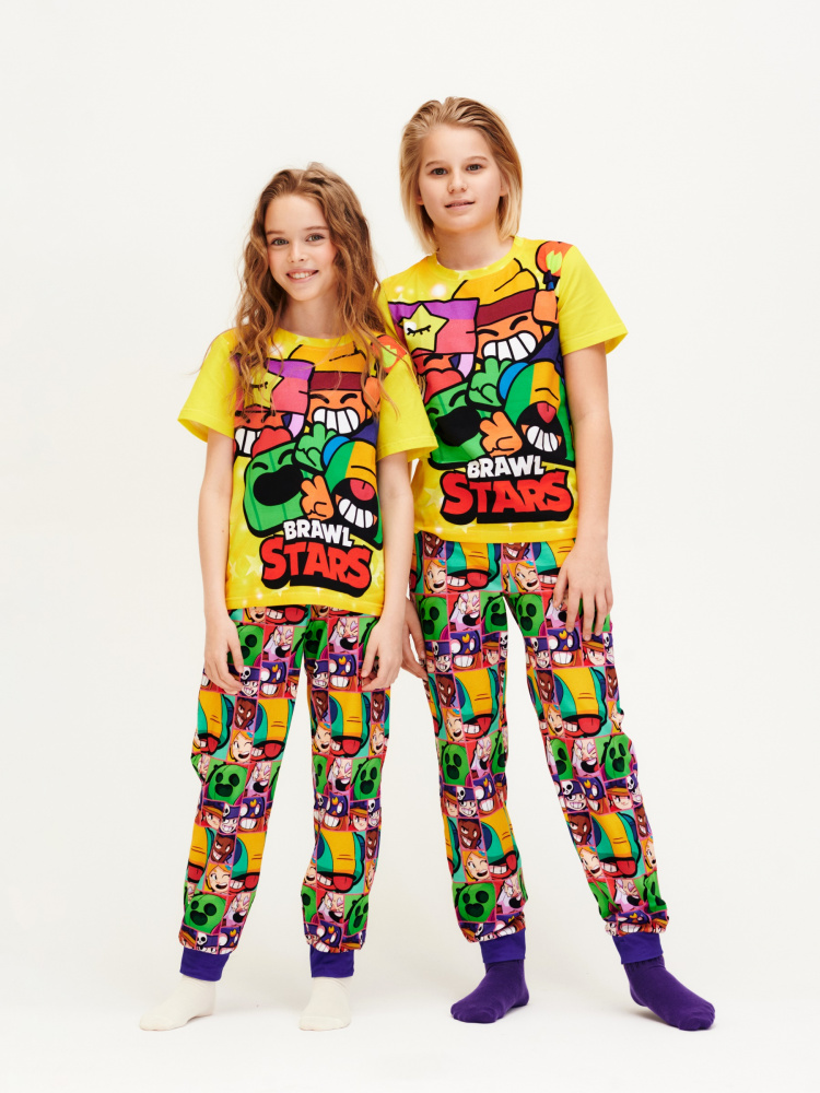 Стильная пижама c ярким тематическим принтом из хлопка. Комплект состоит из футболки прямого силуэта и брючек с манжетой. Пижама идеальна для сна или домашнего времяпровождения. Футболку от пижамы можно использовать как самостоятельную деталь гардероба. Мягкий хлопок с бархатистым эффектом обладает приятными тактильными свойствами, а яркий принт не ощущается на ощупь. Все используемые краски для печати принта безопасные и экологичные.