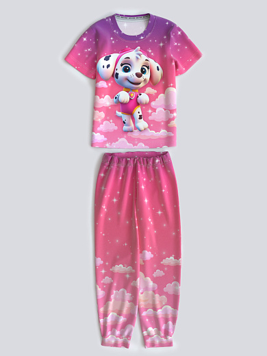 Стильная пижама c ярким тематическим принтом из хлопка. Комплект состоит из футболки прямого силуэта и брюк с манжетой. Пижама идеальна для сна, отдыха или прогулок. Футболку от пижамы можно использовать как самостоятельную деталь гардероба. Мягкий хлопок с бархатистым эффектом обладает приятными тактильными свойствами, а яркий принт не ощущается на ощупь. Все используемые краски для печати принта безопасные и экологичные.