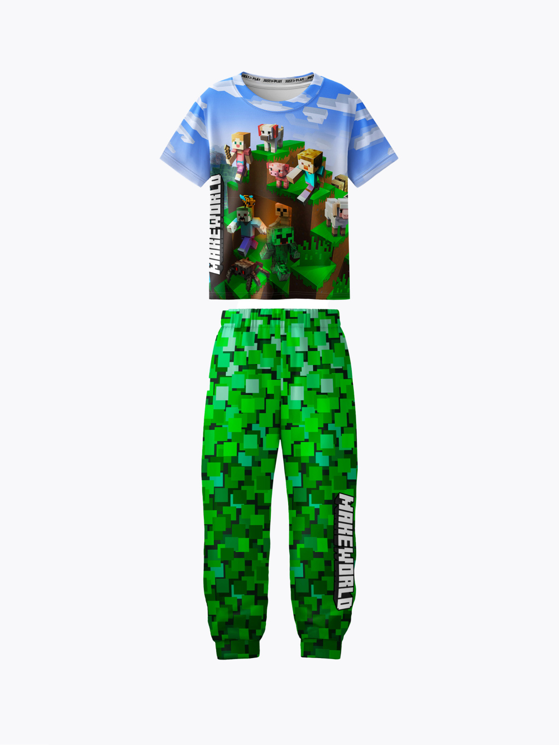Стильная пижама c ярким тематическим принтом из хлопка. Комплект состоит из футболки прямого силуэта и брюк с манжетой. Пижама идеальна для сна, отдыха или прогулок. Футболку от пижамы можно использовать как самостоятельную деталь гардероба. Мягкий хлопок с бархатистым эффектом обладает приятными тактильными свойствами, а яркий принт не ощущается на ощупь. Все используемые краски для печати принта безопасные и экологичные.