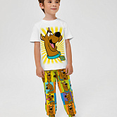 Стильная пижама c ярким тематическим принтом из хлопка. Комплект состоит из футболки прямого силуэта и брюк с манжетой. Пижама идеальна для сна, отдыха или прогулок. Футболку от пижамы можно использовать как самостоятельную деталь гардероба. Мягкий хлопок с бархатистым эффектом обладает приятными тактильными свойствами, а яркий принт не ощущается на ощупь. Все используемые краски для печати принта безопасные и экологичные.