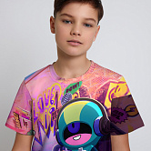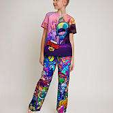 Стильная пижама c ярким тематическим принтом из хлопка. Комплект состоит из футболки прямого силуэта и брюк с манжетой. Пижама идеальна для сна, отдыха или прогулок. Футболку от пижамы можно использовать как самостоятельную деталь гардероба. Мягкий хлопок с бархатистым эффектом обладает приятными тактильными свойствами, а яркий принт не ощущается на ощупь. Все используемые краски для печати принта безопасные и экологичные.
