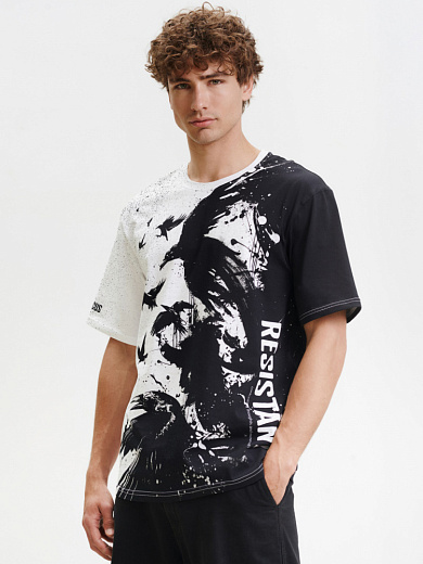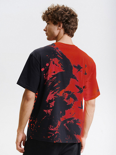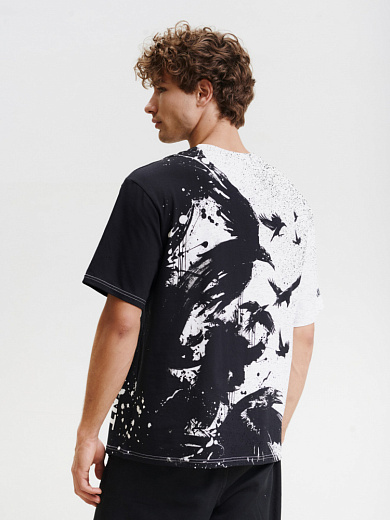 Стильная футболка из хлопка c оригинальным принтом по всей поверхности. Футболка идеально подойдет для повседневной носки. Мягкий хлопок обладает приятными тактильными свойствами, а яркий принт не выцветает и совершенно не ощутим. Все используемые краски для печати принта безопасные и экологичные.