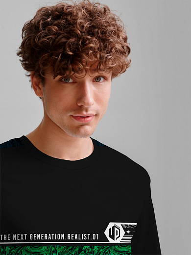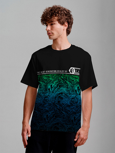 Стильная футболка из хлопка c оригинальным принтом по всей поверхности. Футболка идеально подойдет для повседневной носки. Мягкий хлопок обладает приятными тактильными свойствами, а яркий принт не выцветает и совершенно не ощутим. Все используемые краски для печати принта безопасные и экологичные.