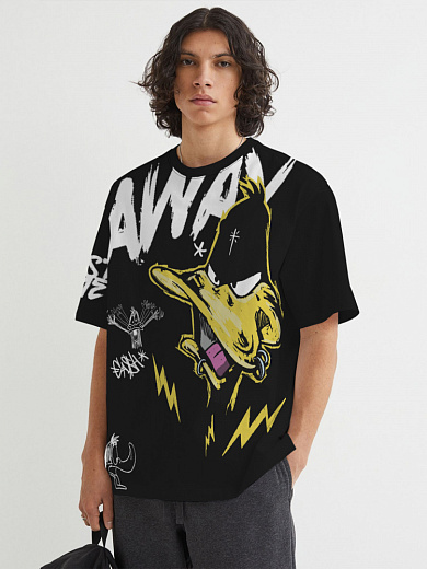 Стильная футболка из хлопка c оригинальным принтом по всей поверхности. Футболка идеально подойдет для повседневной носки. Мягкий хлопок обладает приятными тактильными свойствами, а яркий принт не выцветает и совершенно не ощутим. Все используемые краски для печати принта безопасные и экологичные.