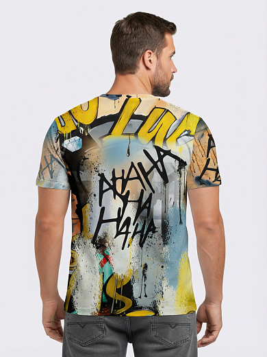 Стильная футболка из хлопка c оригинальным принтом по всей поверхности. Футболка идеально подойдет для повседневной носки. Мягкий хлопок обладает приятными тактильными свойствами, а яркий принт не выцветает и совершенно не ощутим. Все используемые краски для печати принта безопасные и экологичные.