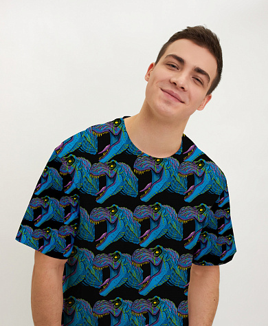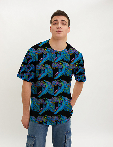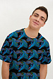 Стильная футболка из хлопка c оригинальным принтом по всей поверхности. Футболка идеально подойдет для повседневной носки. Мягкий хлопок обладает приятными тактильными свойствами, а яркий принт не выцветает и совершенно не ощутим. Все используемые краски для печати принта безопасные и экологичные.