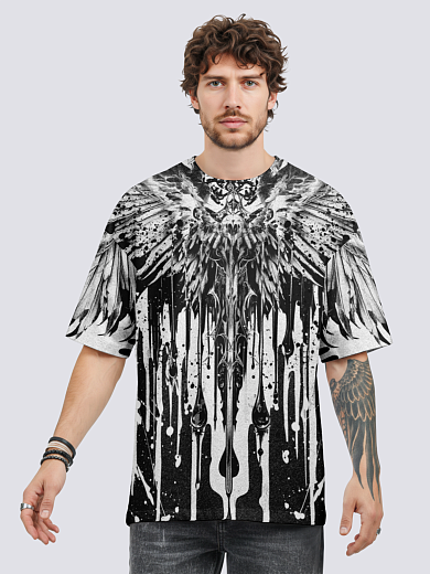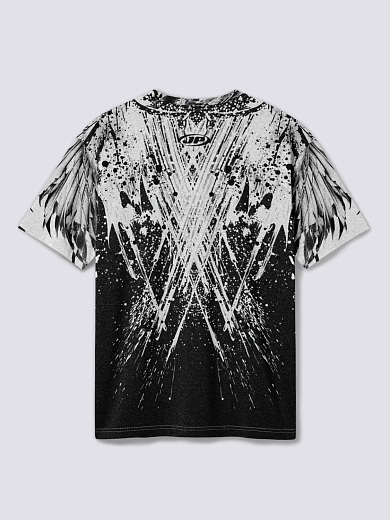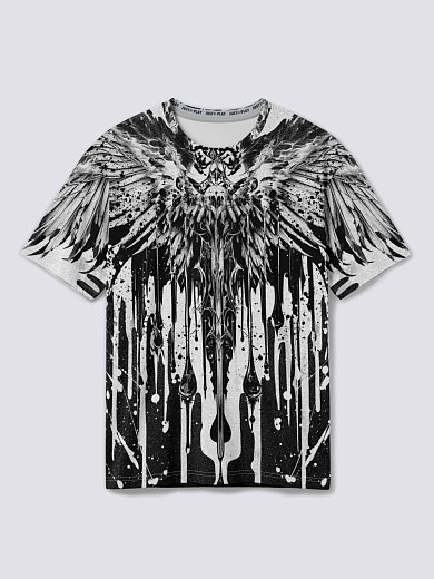 Стильная футболка полуприлегающего силуэта из хлопка c оригинальным принтом по всей поверхности. Футболка идеально подойдет для повседневной носки. Мягкий хлопок обладает приятными тактильными свойствами, а яркий принт не выцветает и совершенно не ощутим. Все используемые краски для печати принта безопасные и экологичные.
