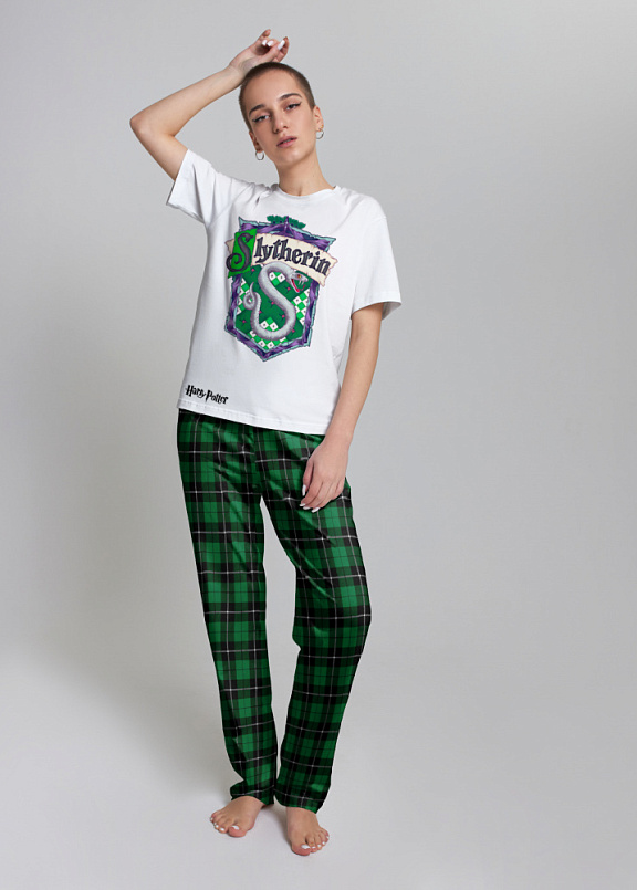Стильный комплект c ярким тематическим принтом из хлопка. Состоит из футболки прямого силуэта и брюк с манжетой. Комплект можно использовать как домашний костюм или пижаму. Мягкий хлопок обладает приятными тактильными свойствами, а яркий принт совершенно не ощутим, благодаря уникальной технологии печати по ткани. Все используемые краски для печати принта безопасные и экологичные и позволяют ткани дышать.